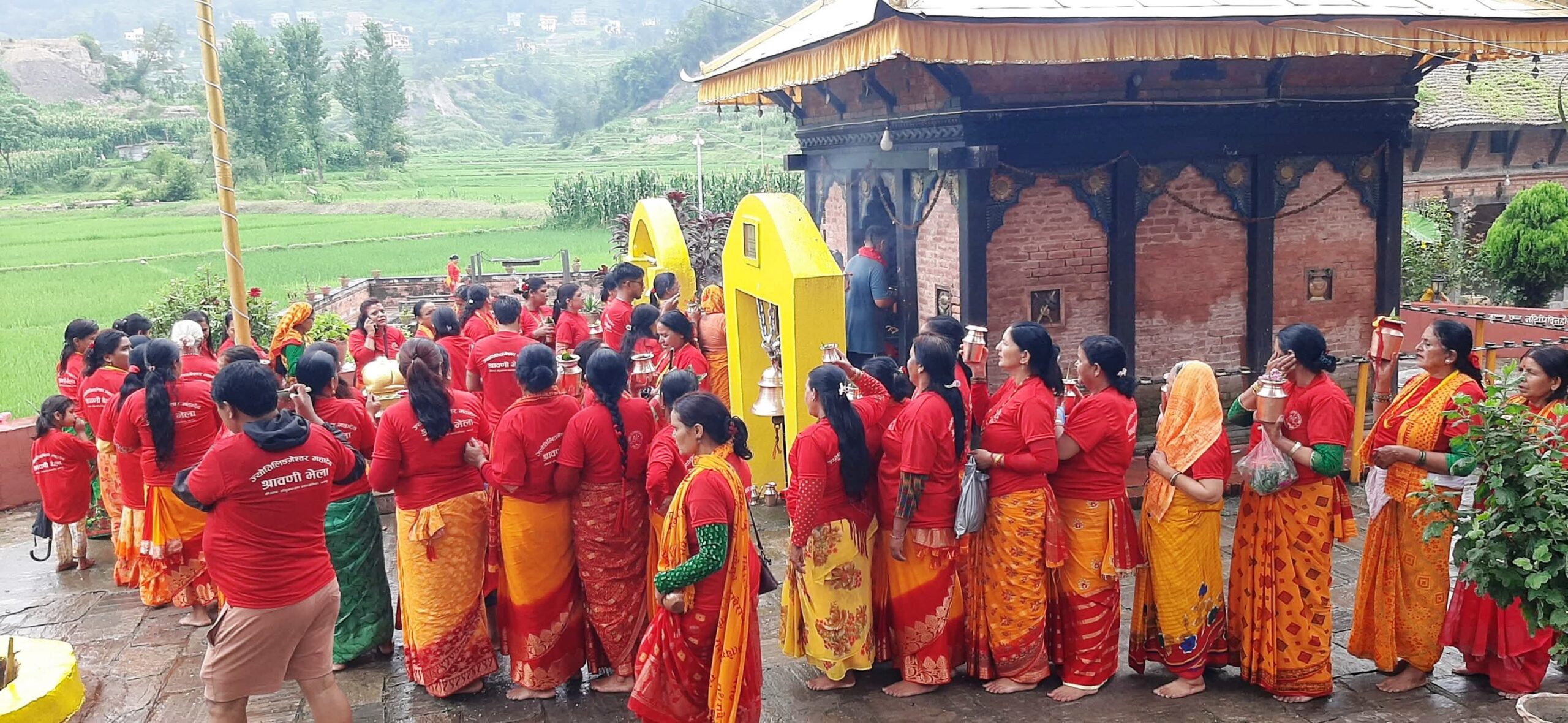 झौखेल, ५ साउन ः चाँगुनारायण नगरपालिका वडा नं. ३ स्थित ज्योर्तिलिङ्गेश्वर महादेव मन्दिरमा सयौं महिलाहरुले जलार्पण गर्दै आज सोमबार मेला भरेका छन् । स्थानीयले मनोहरा खोलाको जल कलशमा भरि कलश यात्रा गर्दै मन्दिरमा जलार्पण गरि मेला भरेका हुन् ।