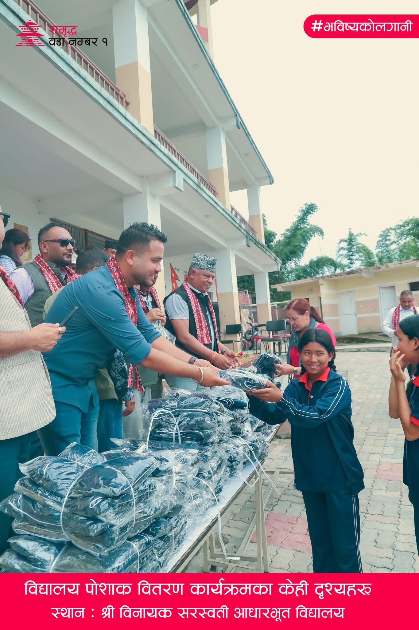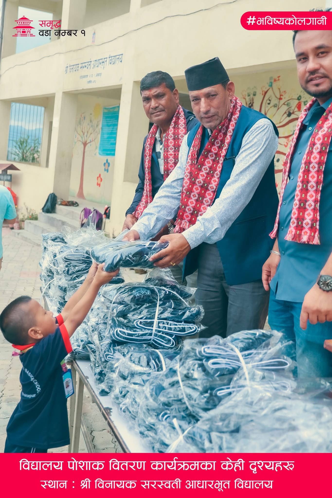 बालबालिकाको सर्वाङ्गिन विकासलाई प्राथमिकता दिँदै आएको ‘समृद्ध वडा नं १’ अभियानले विद्यालयका सम्पूर्ण विद्यार्थीहरुलाई विद्यालय पोशाक वितरण गरिएको हो ।