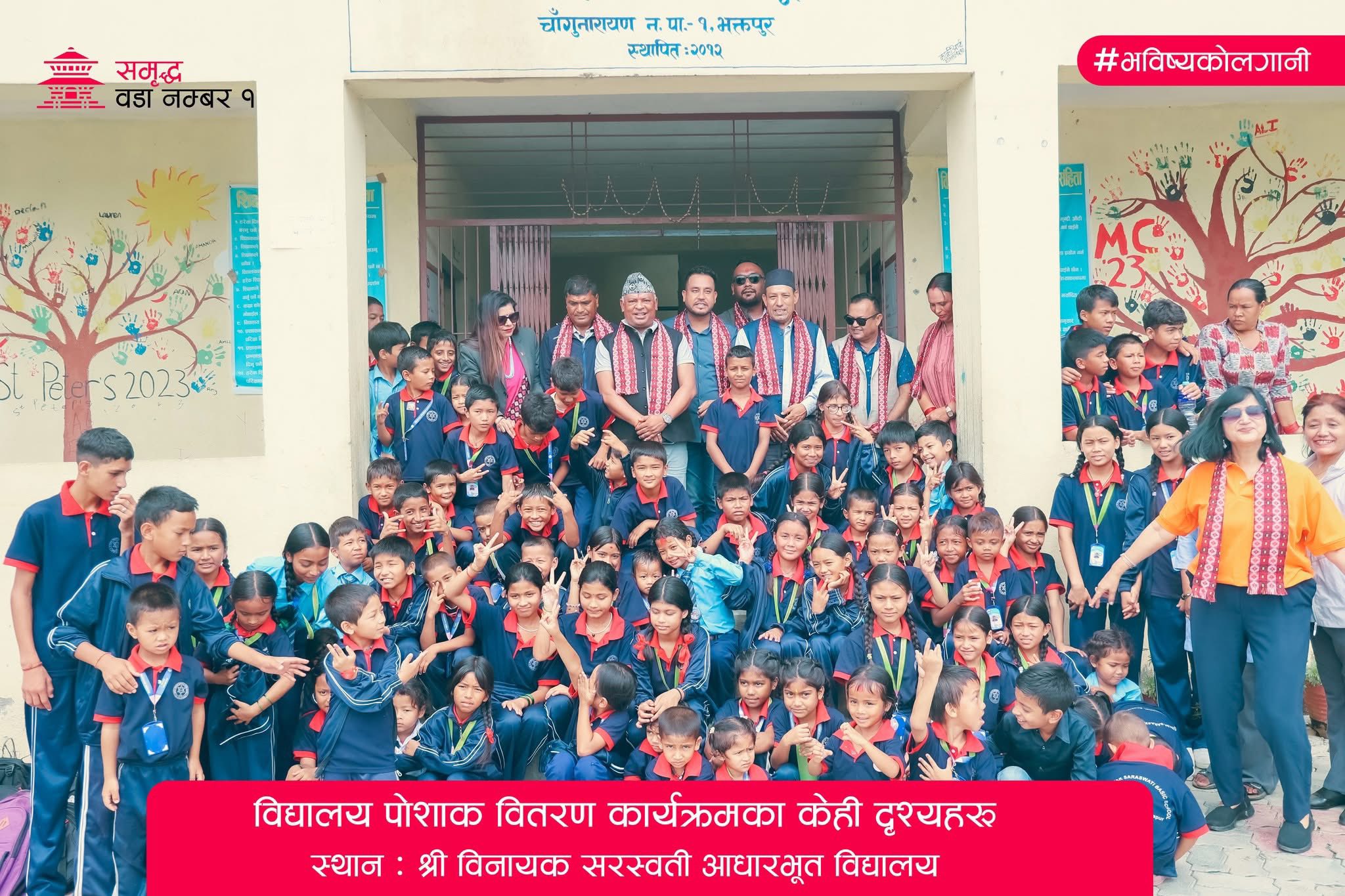 विद्यार्थीलाई चाँगुनारायण नगरपालिकाका प्रमुख जीवन खत्रीले विद्यालय पोशाक वितरण गर्नु भएको हो । उहाँले विद्यार्थीहरुलाई गुणस्तरीय शिक्षा प्रदान गर्न कुनै कसर बाँकी राख्नु नहुने बताउनुभयो ।