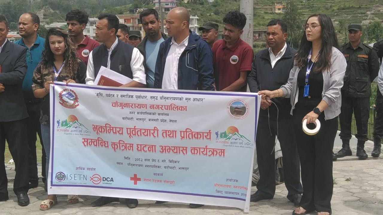 खरिपाटी, (भक्तपुर) ८ जेठ । चाँगुनारायण नगरपालिकाकोे आयोजना आइसेट नेपाल/डिसिए नेपालको आर्थिक र प्राविधिक सहयोग तथा नेपाल रेडक्रस सोसाइटी भक्तपुर जिल्ला शाखासंगको सहकार्यमा चाँगुनारायण नगरपालिकामा भूकम्पीय सुरक्षा तथा आगलागी सम्बन्धि कृतिम घटना अभ्यास सम्पन्न भएकोछ ।