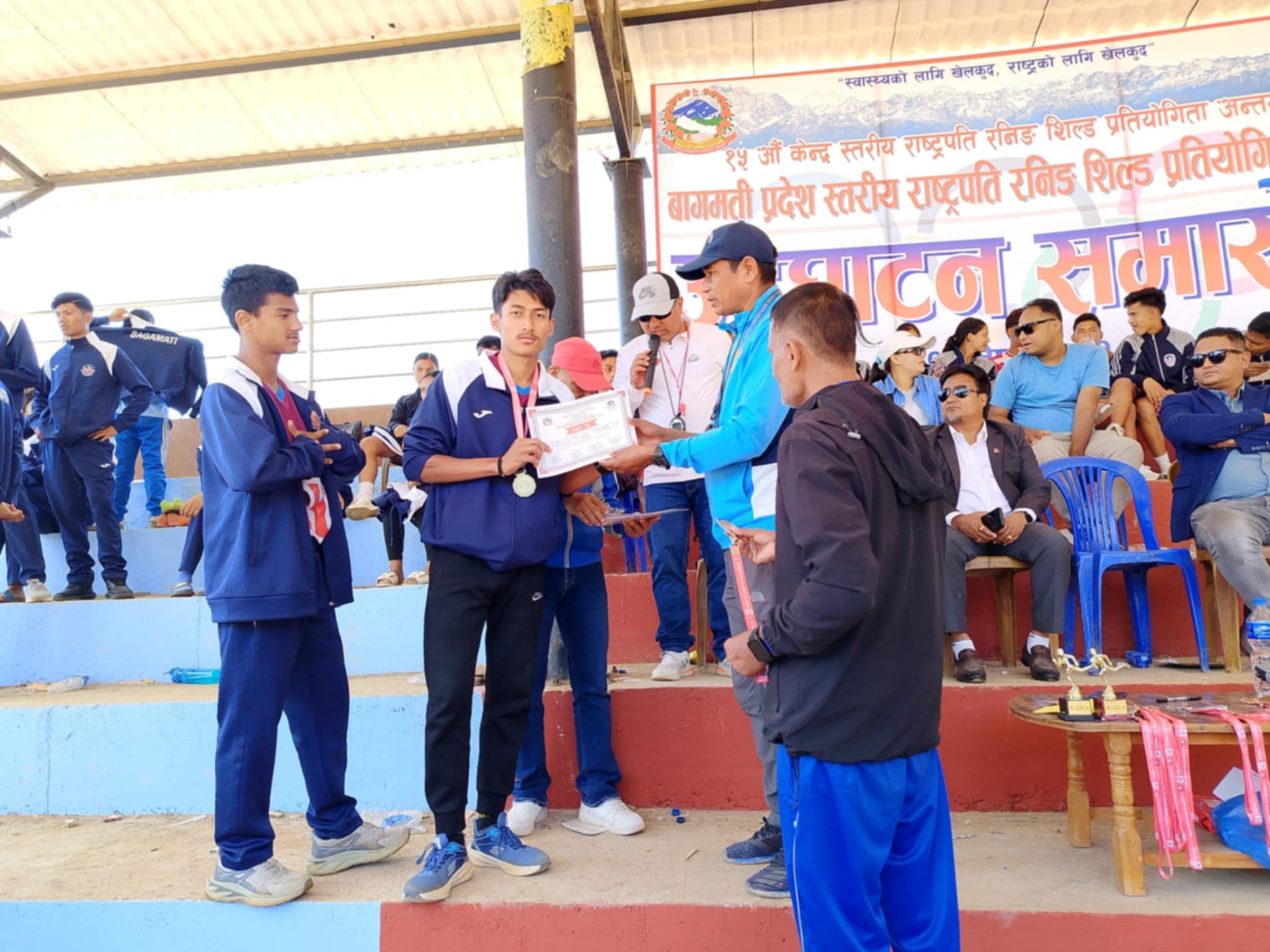 राष्ट्रपति रनिङ्ग शिल्डमा पाँच स्वर्ण पाँच रजत १० काश्य पदक सहित भक्तपुर तेस्रो स्थान बन्न सफल भएको जानकारी दिदै कबड्डी खेल अन्तर्गत भक्तपुर जिल्लाको पुरुष टिम प्रथम र महिला टिम तृतिय भएको उहाँले जानकारी दिनुभयो ।
