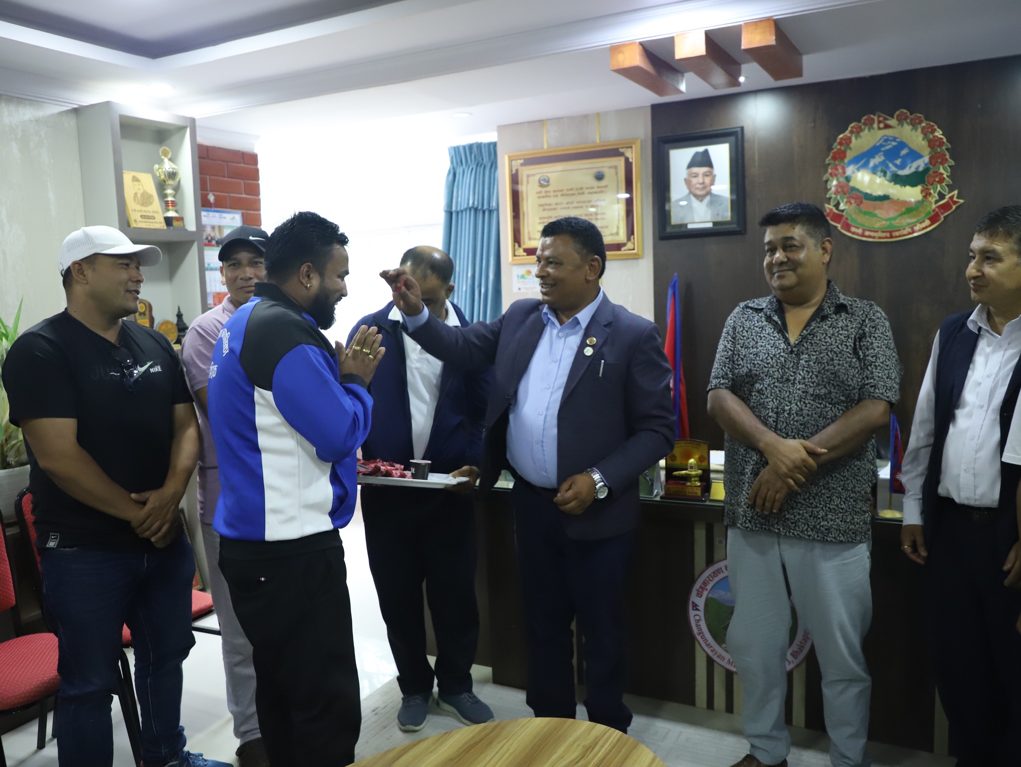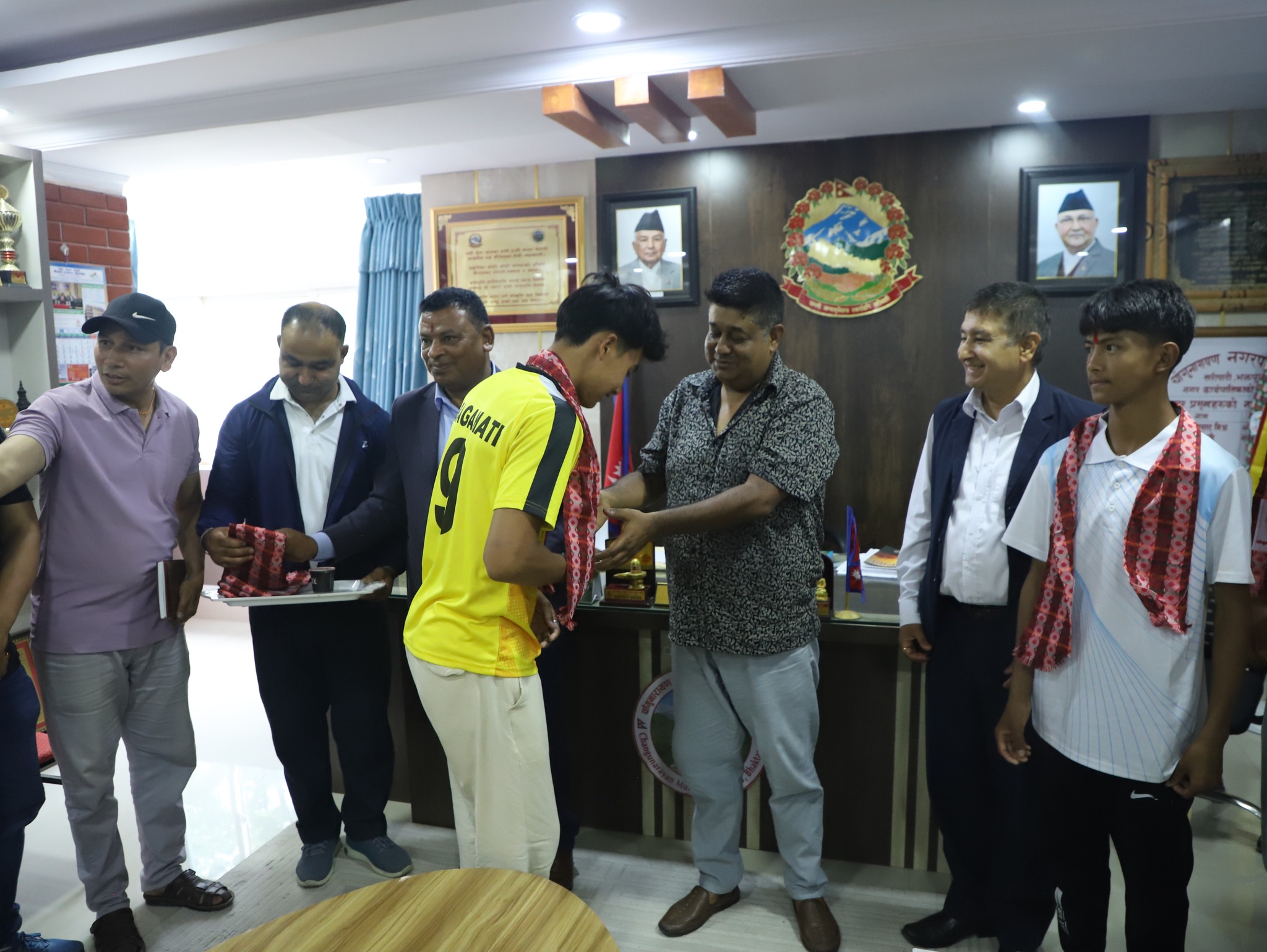 चाँगुनारायण । चाँगुनारायण नगरपालिकाका नगर प्रमुख जीवन खत्रीले १५ ओैं राष्ट्रपति रनिङ्ग शिल्ड कार्यक्रममा गोल्ड मेडल ल्याएर नगरपालिकाको नाम उच्च राख्न सफल चाँगुनारायणका खेलाडीलाई सम्मान गर्नु भएको छ ।