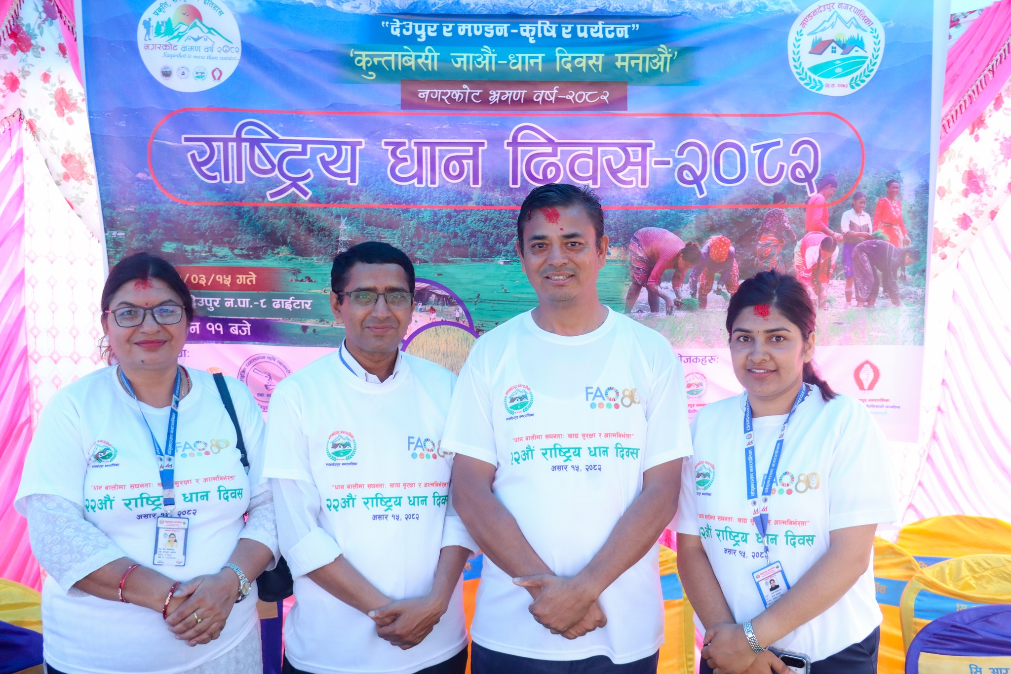 कार्यक्रममा चाँगनारायणका प्रशासकीय प्रमुख मोहन कुमार श्रेष्ठ, नगरकोट भ्रमण वर्ष–२०८२ सचिवालयका सदस्य सचिव गोविन्द कटेल एवं सदस्यहरु, नगरकोट नाल्दुम पर्यटन विकास समितिको पदाधिकारीहरु एवं सदस्यहरु, स्थानीयवासीलगायतले धान दिवसको अवसरमा धान रोपेर उत्सवका रुपमा मनाएका थिए । कार्यक्रममा इन्द्रेणी समूहका अध्यक्ष कृष्ण कडेँल नेतृत्वको साँस्कृतिक टोलीले लोक गीतले थप मनोरञ्जन दिएको थियो ।