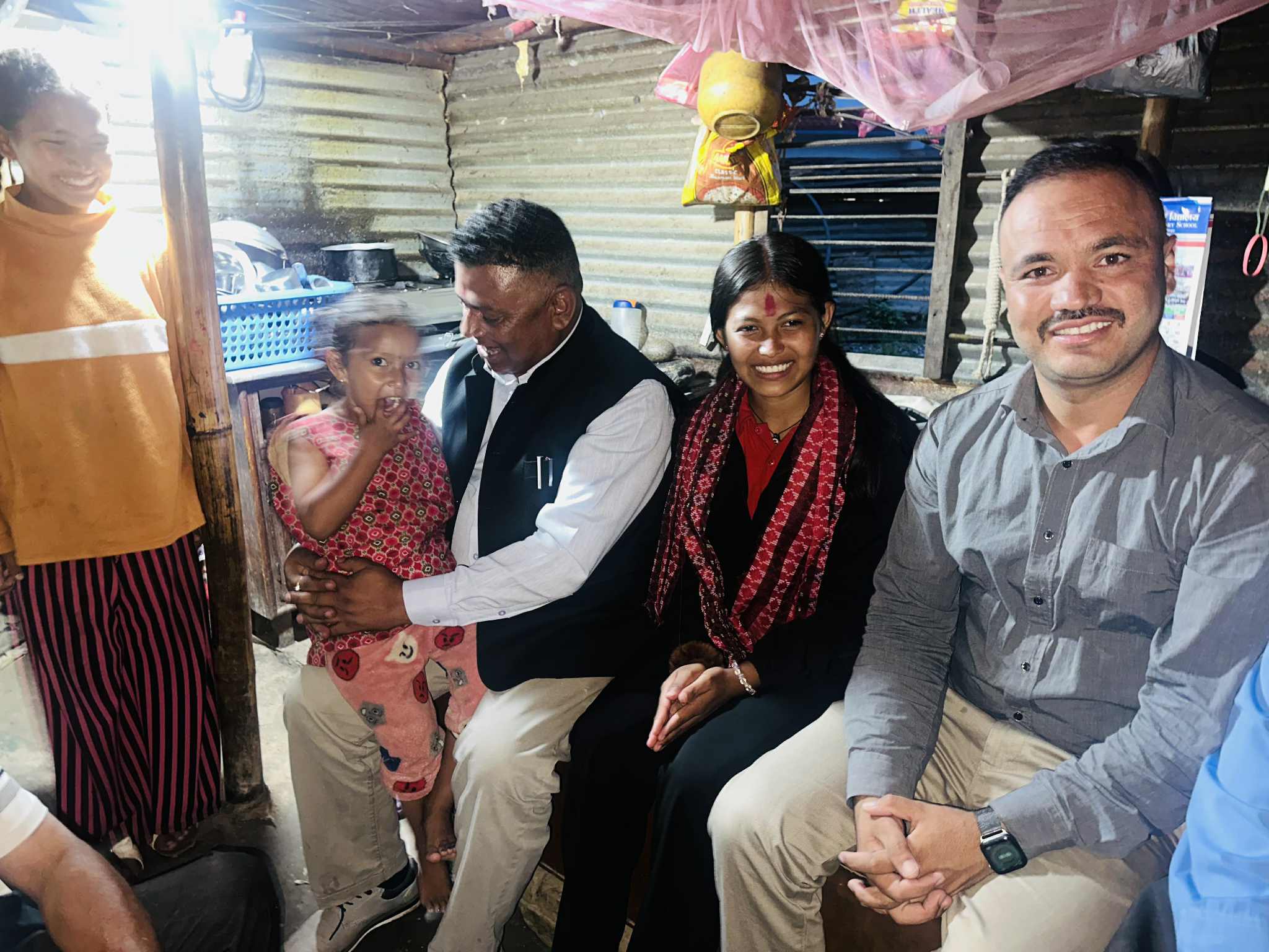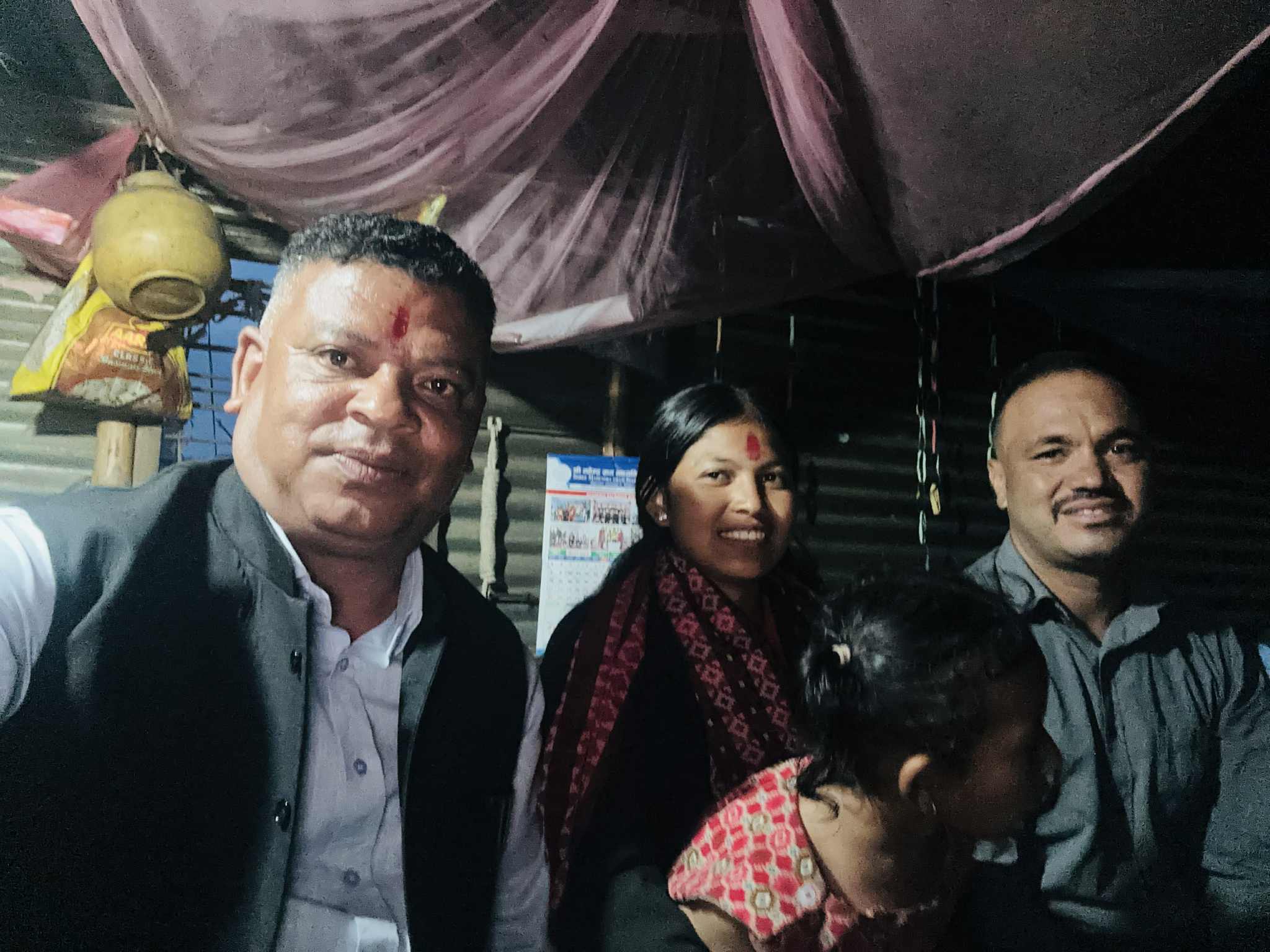 नगर प्रमुख जीवन खत्री बधाईको सन्देश बोकेर जव गोमाको टहरा भित्र पस्नुभो …………………………………