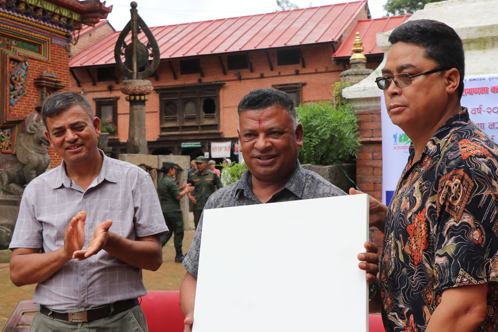 चाँगुनारायणमा कलाकारलाई क्यान्भास प्रदान गर्दै नगर प्रमुख जीवन खत्रीले भन्नभयो : समाजमा विकास र स्थानीयको मुहारमा मुस्कान ल्याउन लागिरहेका छौँ