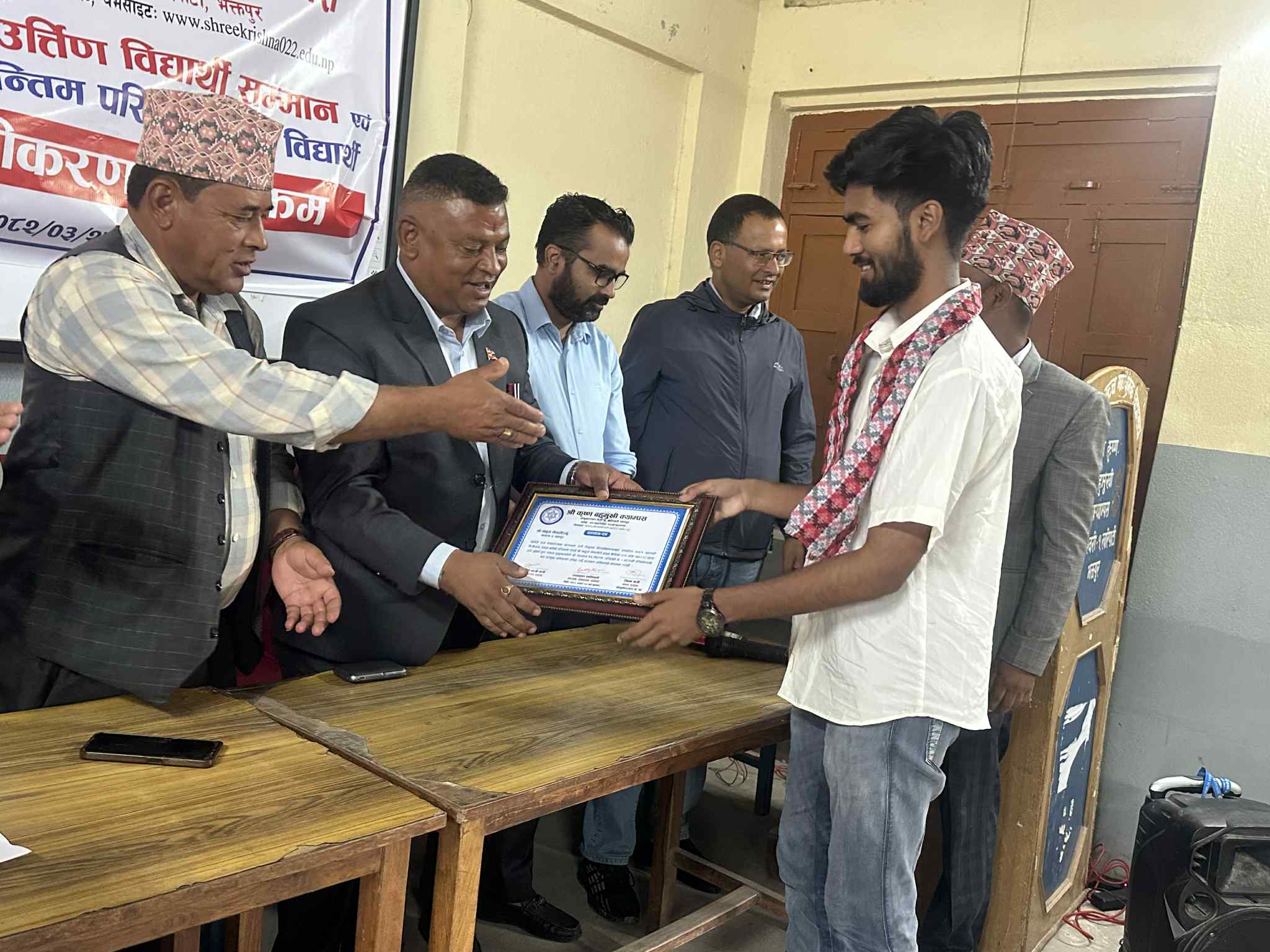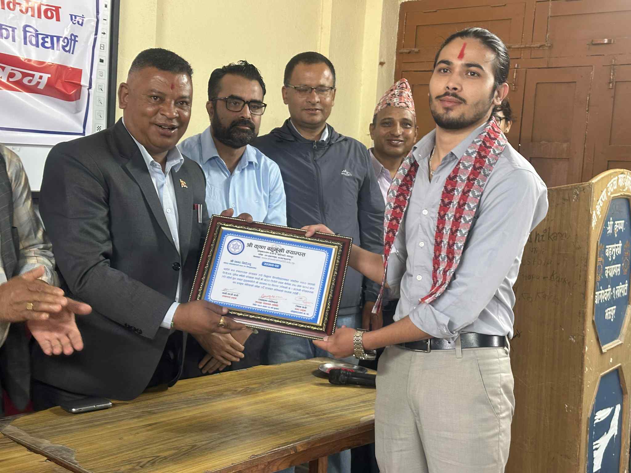 नगर प्रमुख जीवन खत्रीद्धारा श्रीकृष्ण बहुमुखी क्याम्पसका प्रथम श्रेणमिा उतीर्ण विद्यार्थीहरुलाई सम्मान